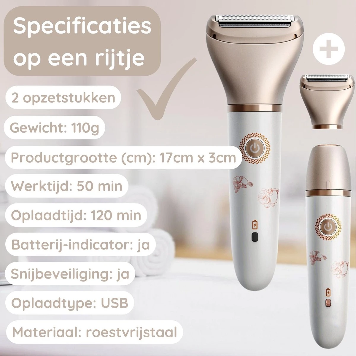 De scheerkoppen van de ladyshave zijn voorzien van extra beschermingslagen die zorgen voor een gladde scheerbeurt zonder wondjes. Vanaf nu scheer je PIJNVRIJ met onze zachte ladyshaver; vaarwel botte messen en sneetjes!