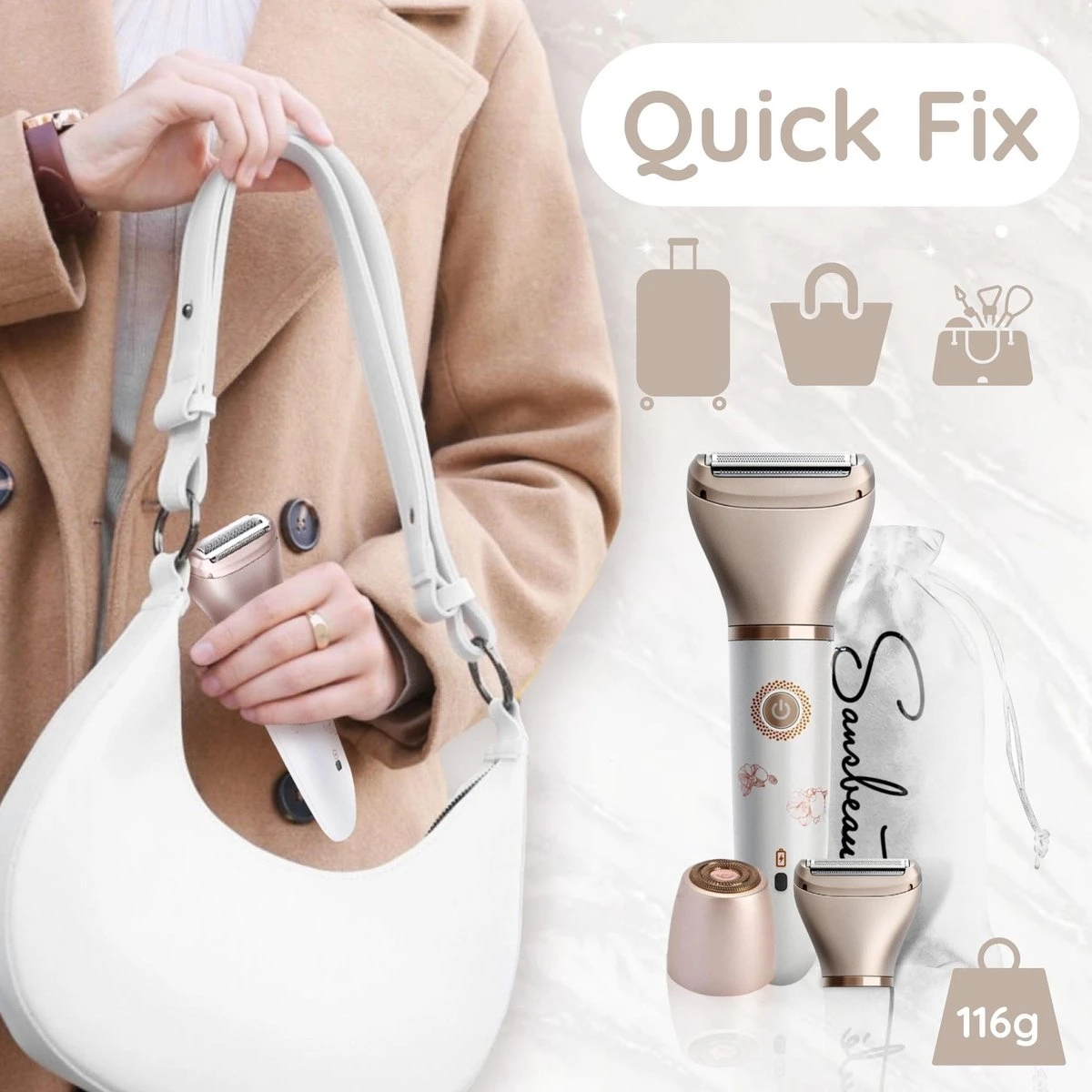 Door de 2 verschillende koppen is de Sansbeauté ladyshaver niet alleen geschikt voor de ontharing op je gezicht, maar ook rondom de bikinilijn, oksels, armen en benen (full body). Deze alles-in-één ladyshaver heeft het allemaal, zonder huidirritaties! In één klap pak je ALLE ongewenste haren aan.