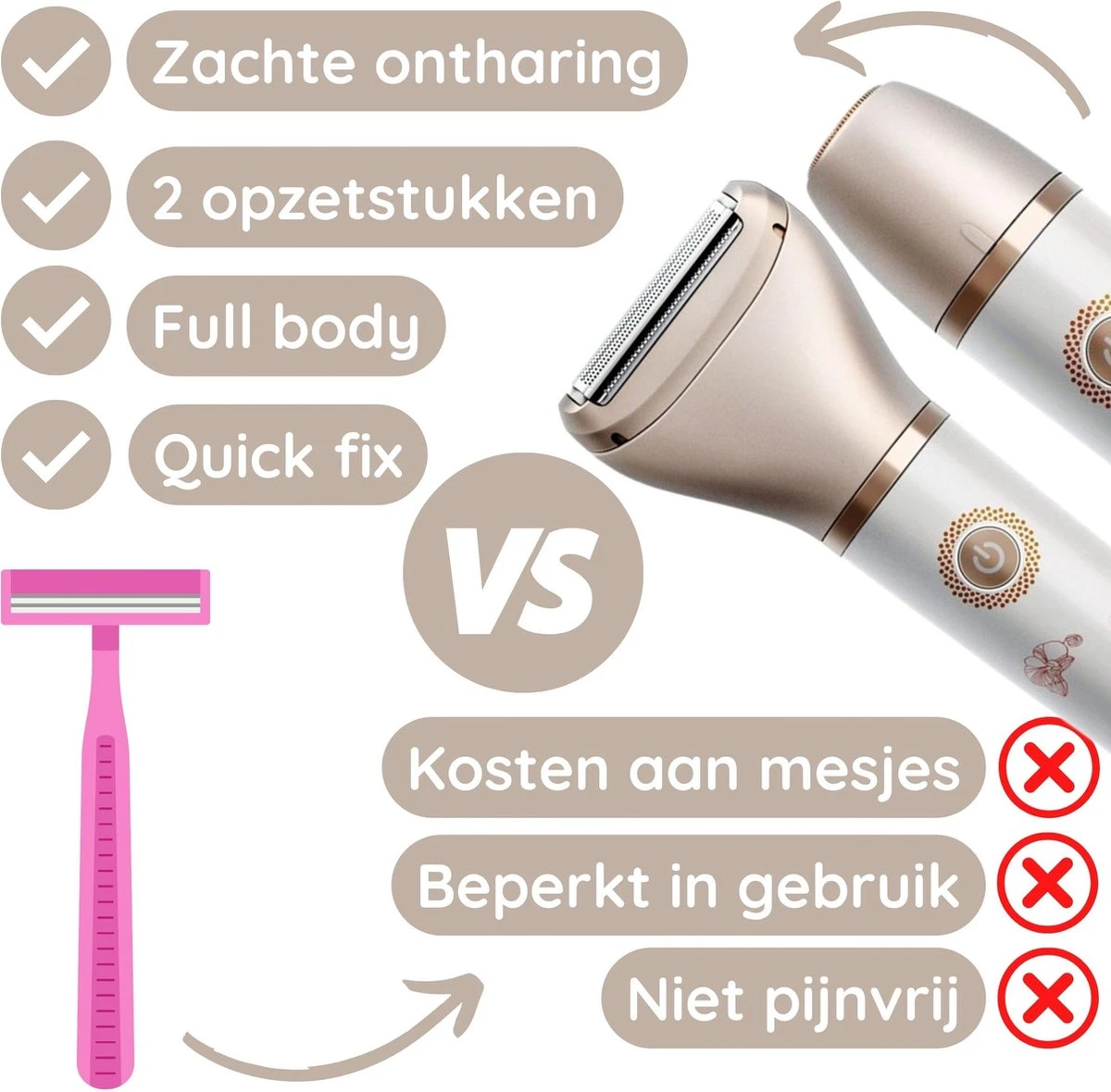 - 2 in 1 Ladyshave is geen epileerapparaat (!), dus geen pijnlijke ontharingsbehandelingen!