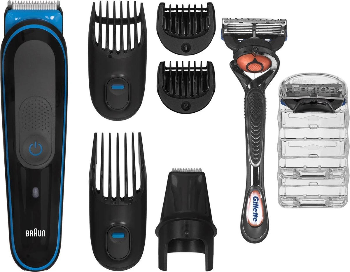 - 7-in-1 trimmer voor baard, gezicht en haar en een gratis Gillette Fusion5 ProGlide scheermesje voor glad scheren, baardtrimmer, scheerapparaat