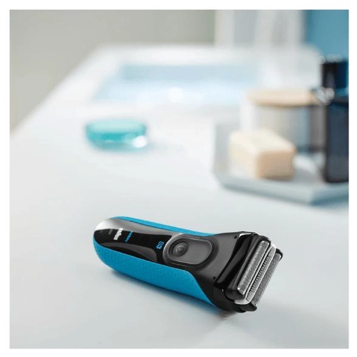 Het Braun Series 3 ProSkin oplaadbare elektrische scheerapparaat/scheersysteem biedt een snellere scheerbeurt met beter comfort voor je huid*. De 3 drukgevoelige scheerelementen passen zich aan elke gezichtscontour aan en pakken meer haartjes bij de eerste beweging*.