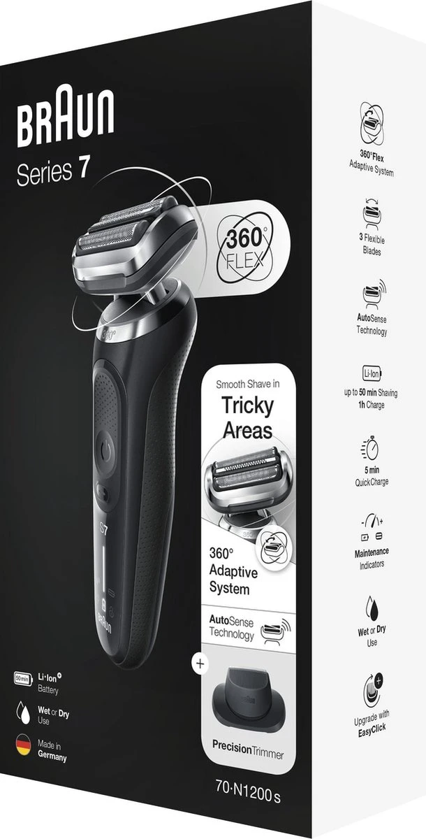 De 360° Flex-kop past zich aan om maximaal contact te leveren voor een gladdere scheerbeurt, zelfs op moeilijke plekken.