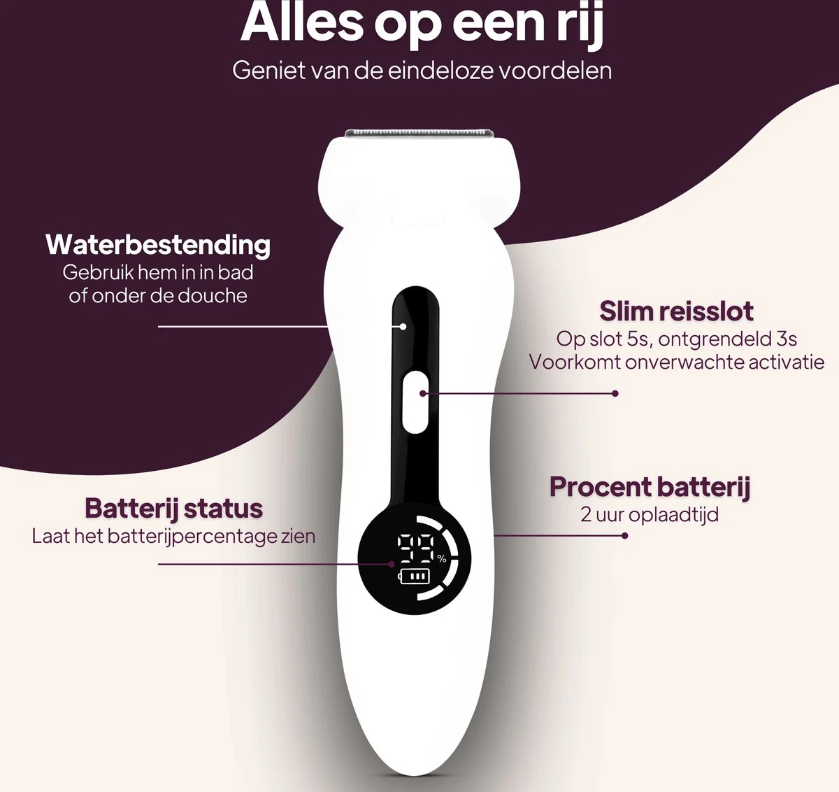 Let op! Na scheergebruik is het niet meer mogelijk om de ladyshave retour te sturen.