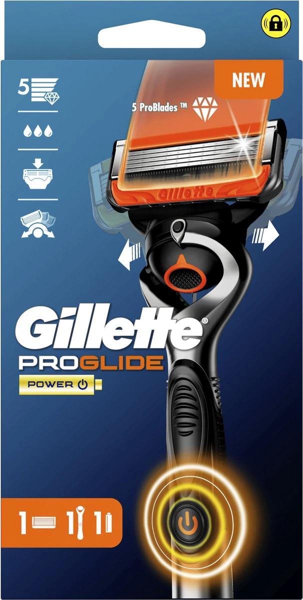 Het Gillette ProGlide Power scheersysteem voor mannen biedt de bekende precisie van Gillette en zorgt daarbij ook nog voor comfort en stijl. Dit scheersysteem heeft micropulsen die op batterij werken voor minder frictie zodat het scheerapparaat nog soepeler glijdt. De megagrote Lubrastrip zorgt voor meer comfort en beter glijden. De extra stabilisatie voor het mesje zorgt voor betere plaatsing van de mesjes en de bredere Lubrastrip beschermt je huid. De precisietrimmer aan de achterkant is perfect voor het stylen van je gezichtshaar, vooral op moeilijk bereikbare plekken. De ultrascherpe antifrictiemesjes zorgen voor een soepele scheerbeurt en passen op alle Gillette handgrepen met 5 mesjes (met uitzondering van GilletteLabs). Met de ProGlide navulmesjes kun je een maand scheren.