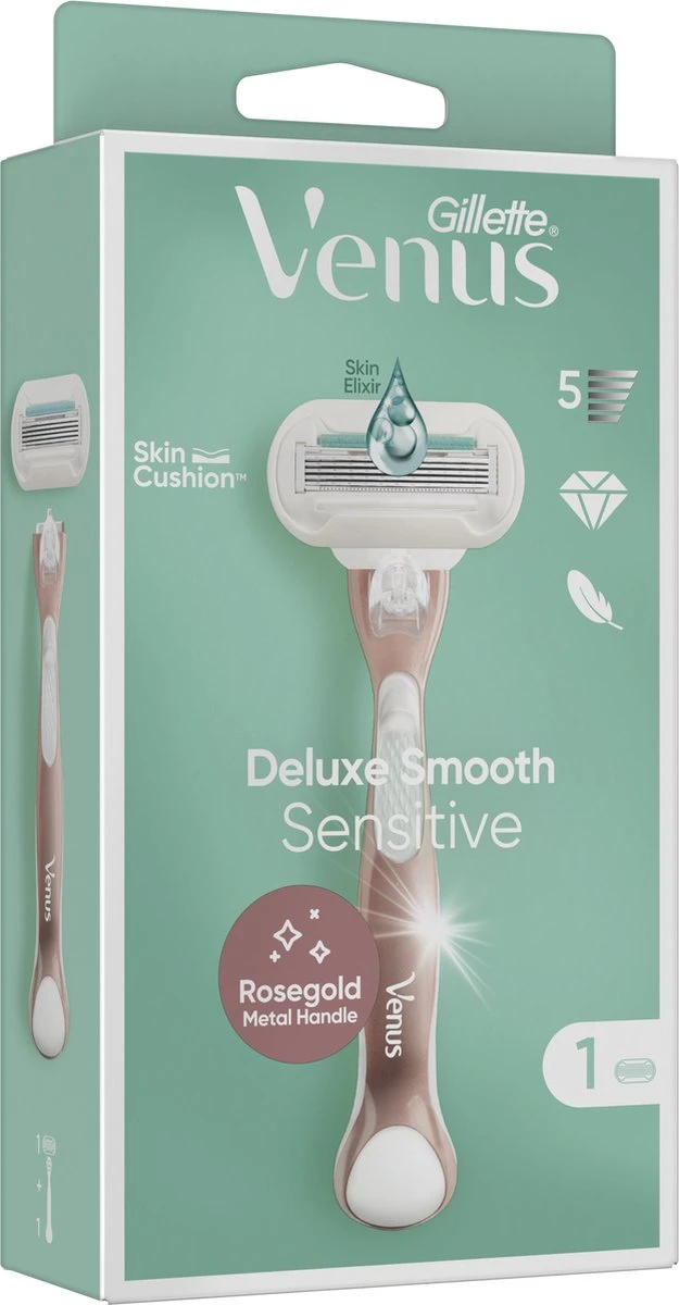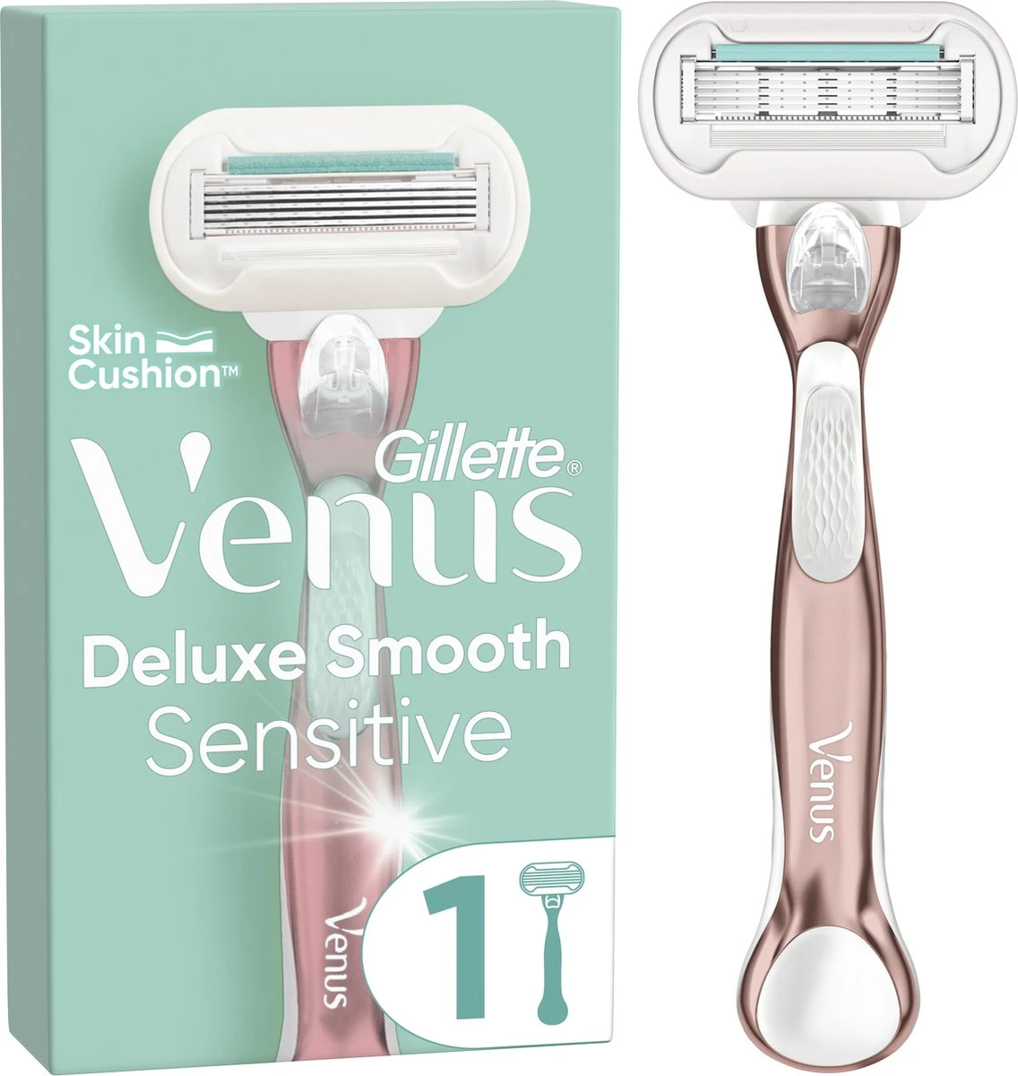 De Gillette Venus Deluxe Smooth Sensitive RoseGold-scheersystemen voor vrouwen bieden tijdens het scheren een optimale bescherming voor uw gevoelige huid.