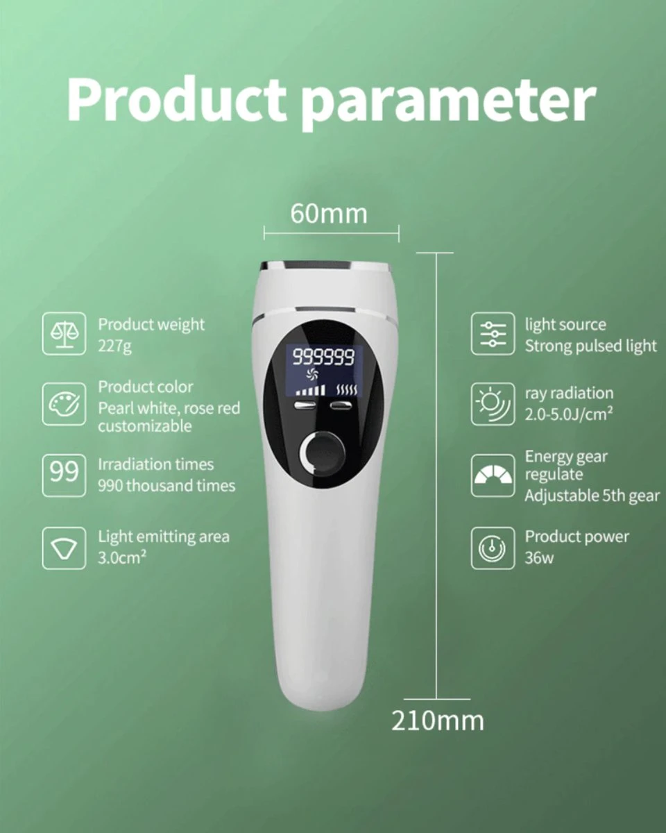 Geniet van pijnloze, permanente ontharing met deze IPL laser! Met een vermogen tot 1 miljoen flitsen bent u binnen 8-12 weken haarvrij. Profiteer van de betaalbare alternatief voor een dure laserbehandeling – elimineer ongewenste haargroei voorgoed! Deze IPL laser maakt ontharing eenvoudiger dan ooit: met slechts een paar minuten per dag kunt u beginnen met het verwijderen van haar.