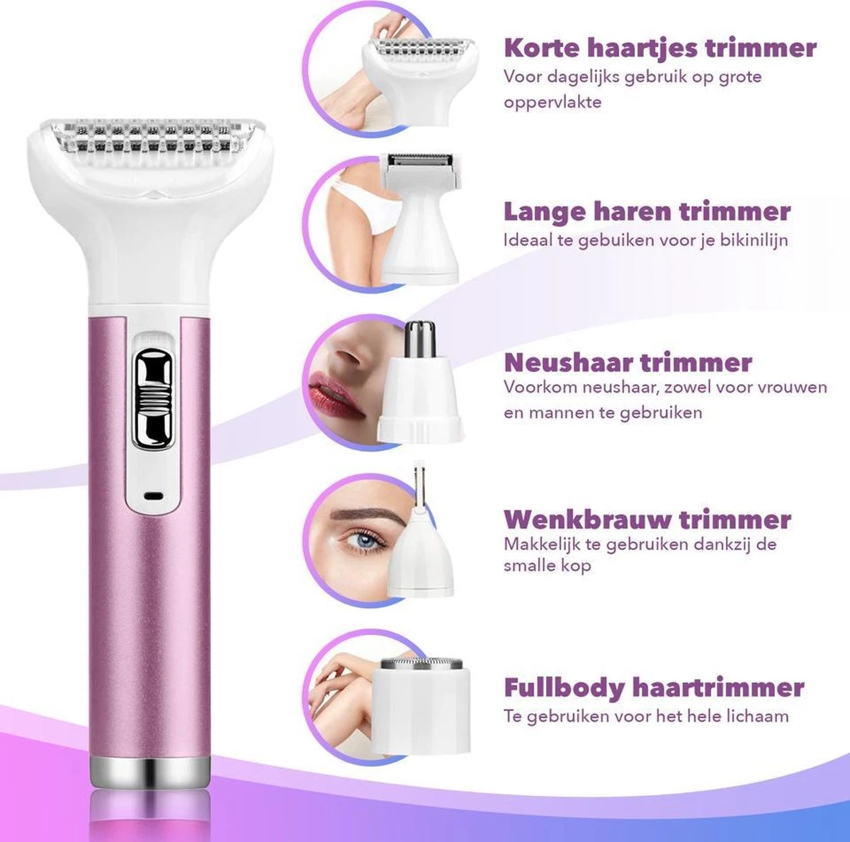 Het vinden van de perfecte haarverwijderaar kan aanvoelen als het zoeken naar een speld in een hooiberg. Hoe vind je de perfecte, pijnloze en snelste haarverwijderaar? Met onze 5-in-1 ladyshave zal je er binnenkort elke dag fantastisch uitzien en je een prinses voelen. Je hoeft geen uren meer bezig te zijn of verschillende scheermesjes en epilators aan te schaffen. Alles wat je nodig hebt vind je namelijk in onze MM Brands gezichtsepilator en elektrisch scheerapparaat voor vrouwen.