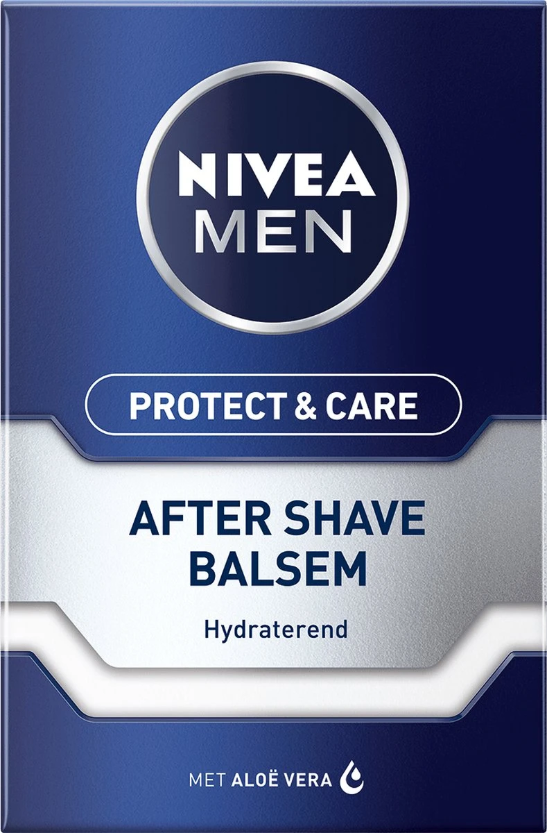 NIVEA MEN Protect & Care Hydraterende Aftershave Balsem verlicht en herstelt je huid direct na het scheren. De formule met Aloë Vera en Pro-Vitamine B5 verzorgt de huid en vermindert roodheid en een trekkerig gevoel. Je huid voelt glad, beschermd en comfortabel.