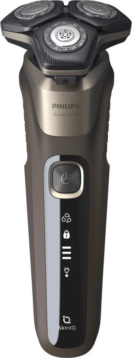 De Philips 5000-serie zorgt voor een krachtige scheerbeurt en scheert nu nog meer haar per beweging. Het scheerapparaat is uitgerust met geavanceerde SkinIQ-technologie en detecteert en past zich aan jouw haardichtheid aan voor meer huidcomfort.