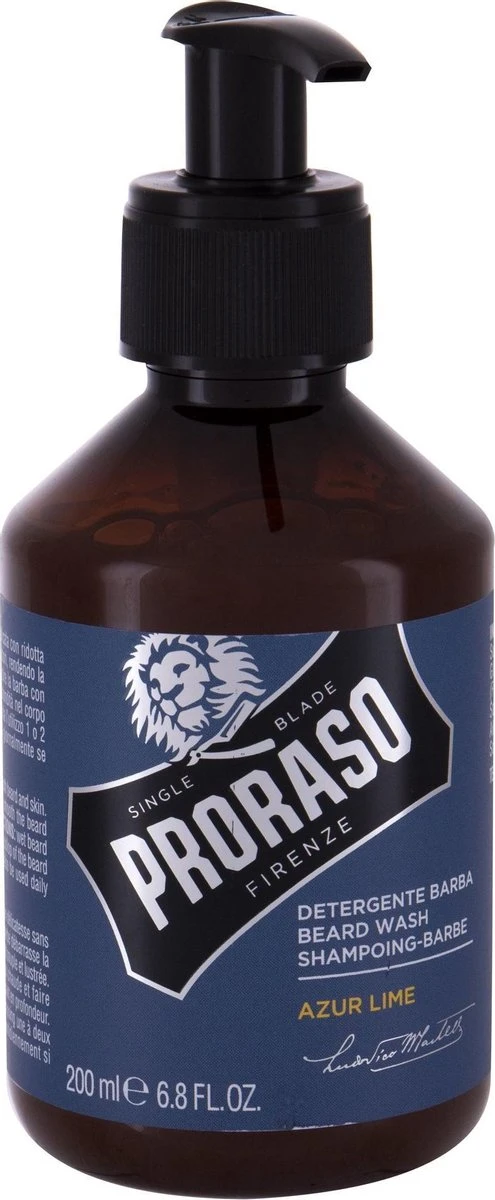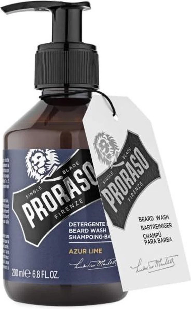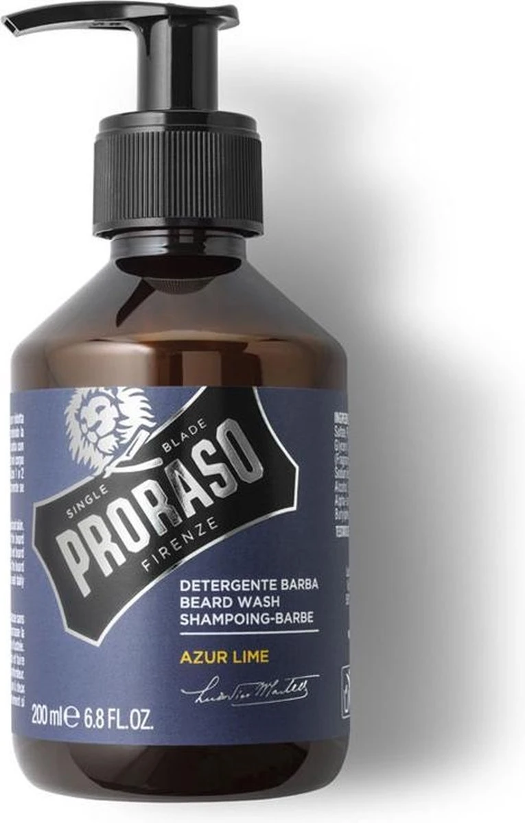De Beard Wash in de Azur Lime variant van Proraso voor het verkrijgen van een frisse en zachte baard.