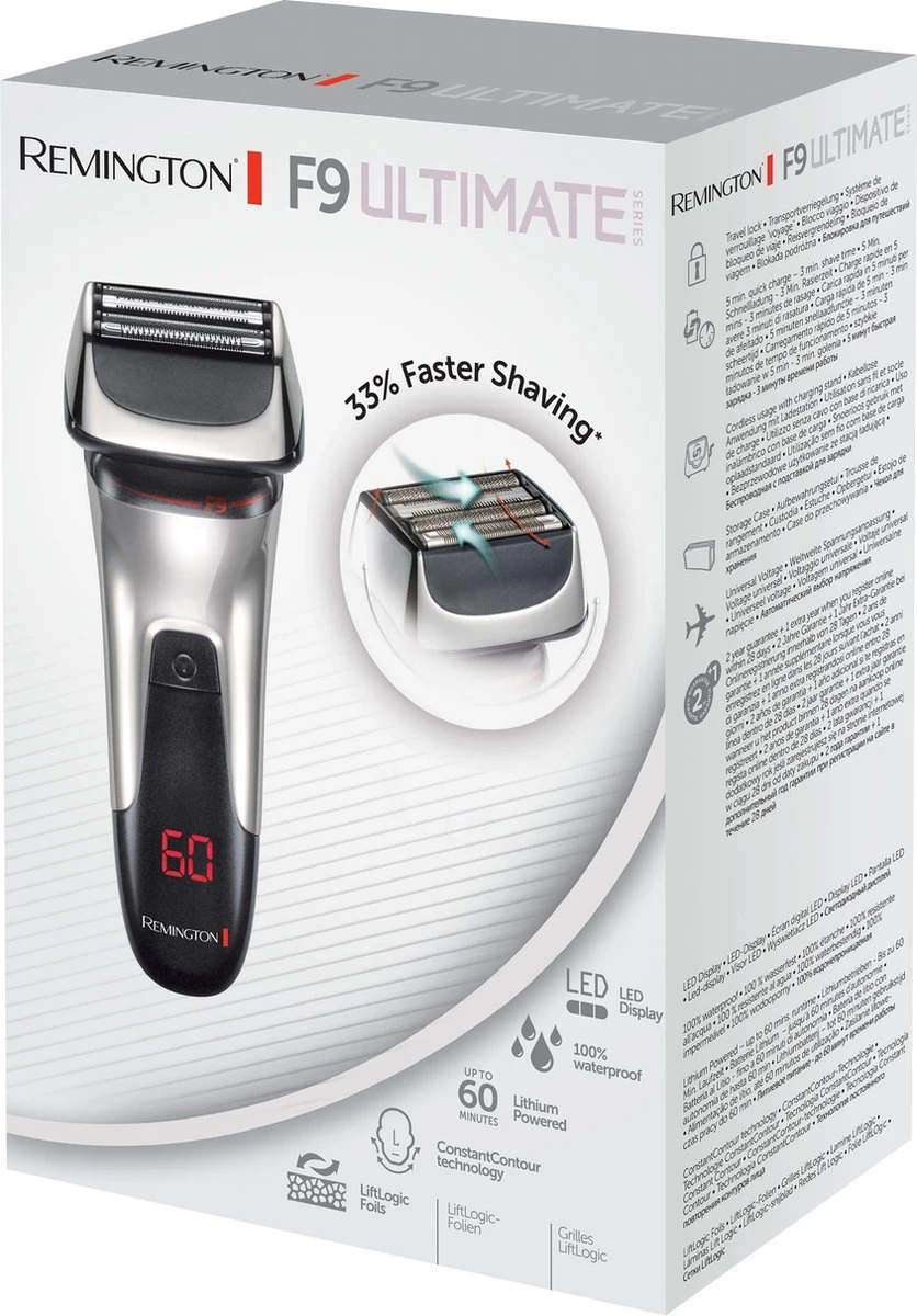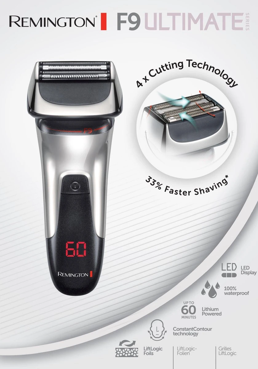 Een glad scheerresultaat krijgen is niet altijd even makkelijk. Remington brengt de nieuwste technologieƫn samen in combinatie met een mooie uitvoering voor de Ultimate Folie Series F9. Glad scheren was nog nooit zo moeiteloos. De F9 is het antwoord voor een gladde scheerbeurt.