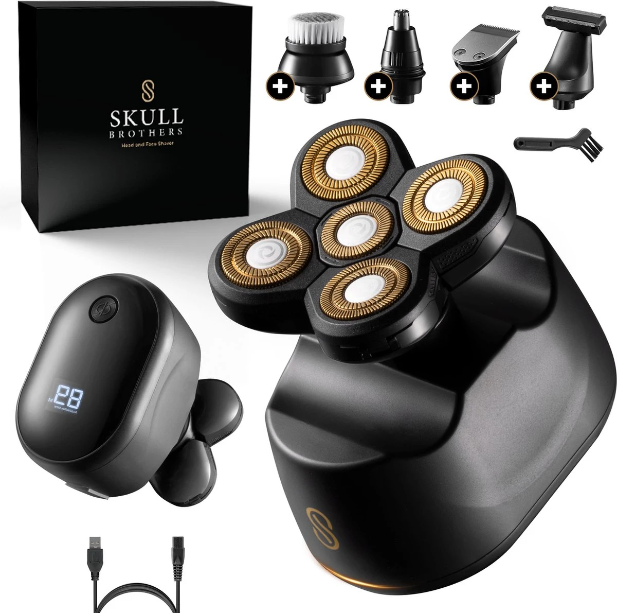 - 6-in-1 – Het scheerapparaat van Skull Brothers® bezit over meerdere opzetstukken en heeft 6 verschillende functies van scheren en trimmen. Zorg voor een stralende en schone huid!