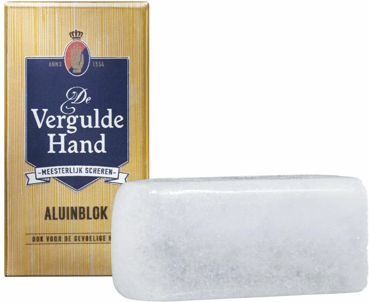 De Vergulde Hand Aluinbok is ideaal om in te zetten bij scheerwondjes, dit komt omdat het blok het bloeden stopt en de wondjes ontsmet. Daarbij voorkomt aluin irritaties op de huid en heeft het een bijzondere en kalmerende werking op de huid. De Vergulde Hand Aliunblok is een redmiddel na het scheren en geeft een verfrissend gevoel.