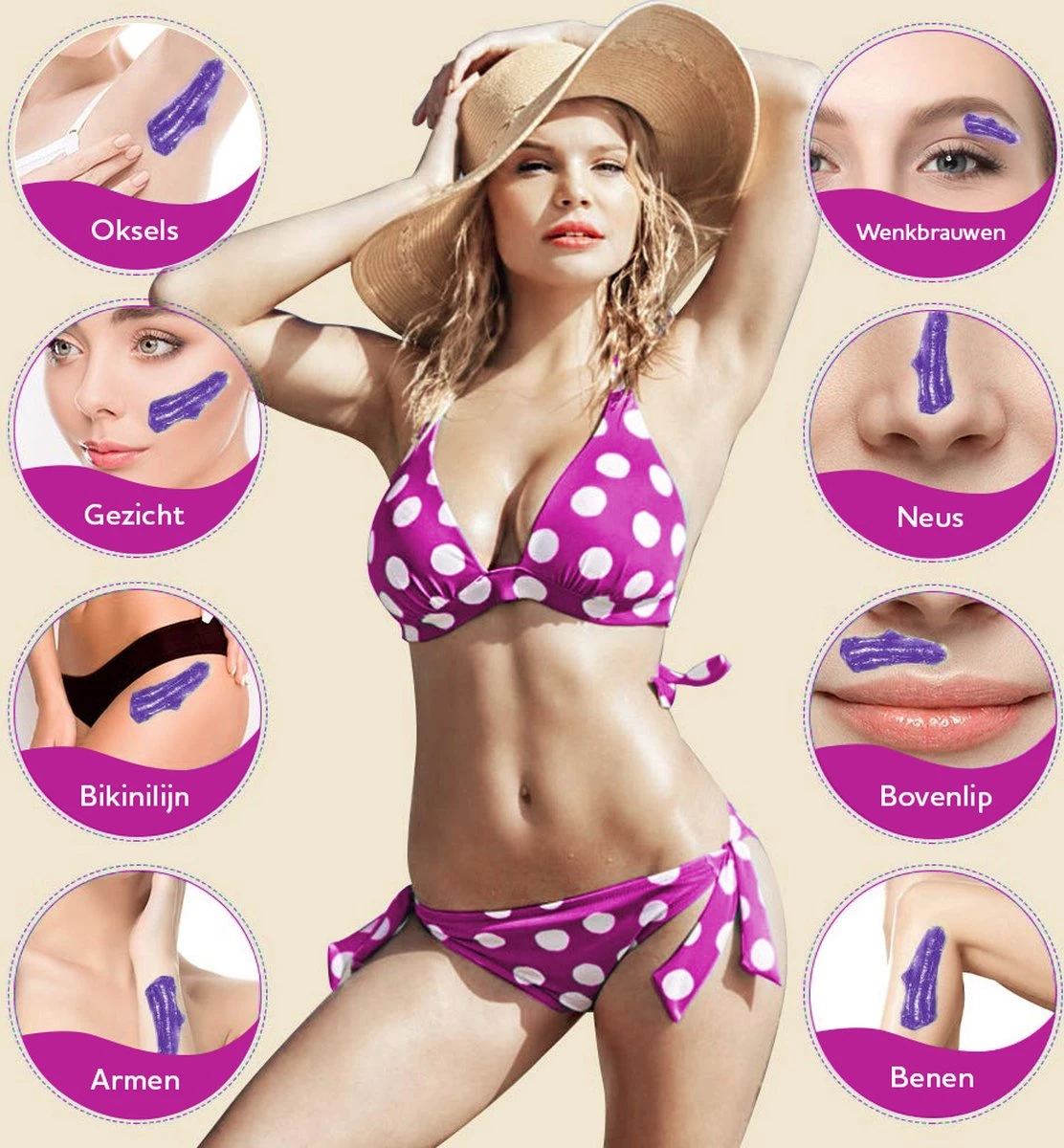 - Let op! Test altijd voor je de wax gebruikt of de temperatuur goed is, zodat je niet per ongeluk te hete wax op je lichaam smeert. Je kunt dit testen door voorzichtig een kleine hoeveelheid aan de binnenkant van je pols te smeren. Pas daarna indien nodig de temperatuur aan.